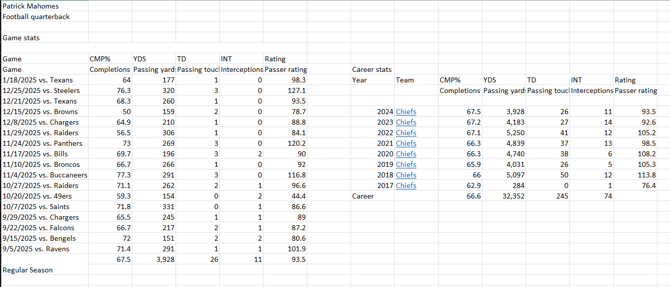 For this assignment, I chose to revisit my Patrick Mahomes statistics infographic because it had strong content but needed improvement in visual hierarchy, readability, and overall design consistency.