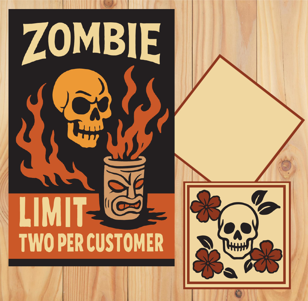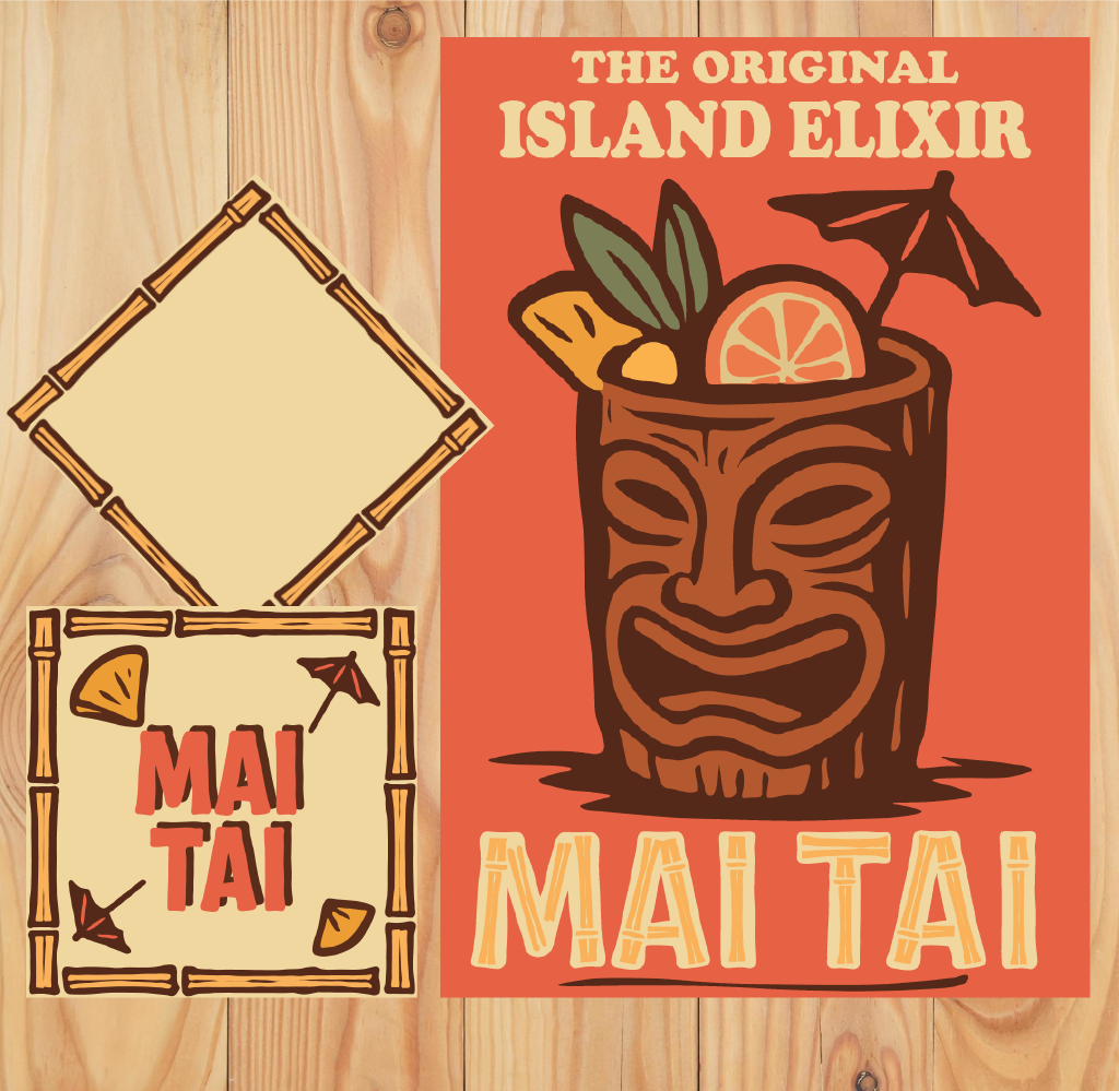 Design 3 different cocktail napkins & posters – one for each type of tiki drink (Typography, poster design)